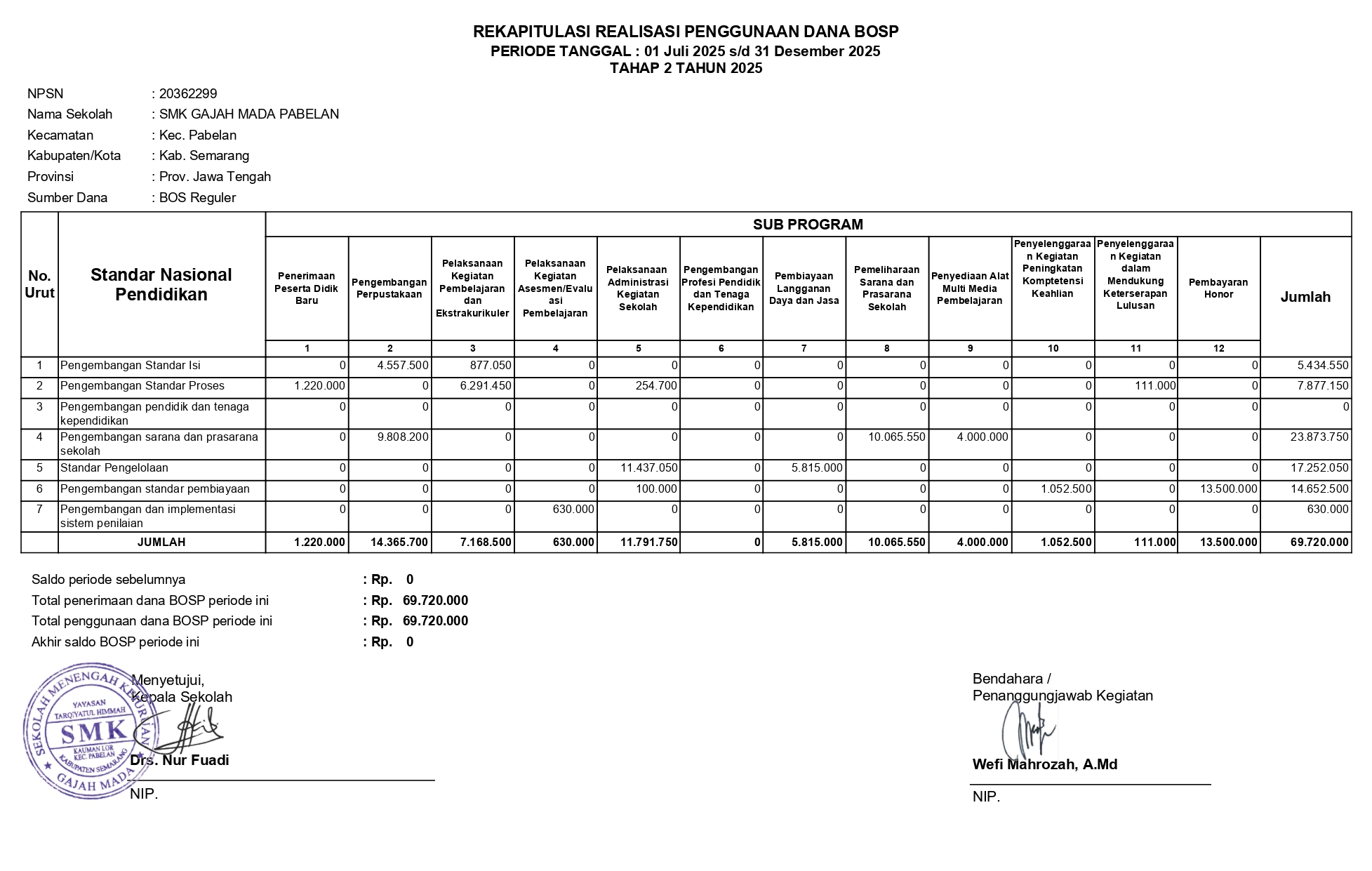 Laporan BOSP Tahap II Tahun 2025SMK Gajah Mada Pabelan Kab. SemarangBerikut tersaji detail laporan BOSP tahap 2 periode tanggal 1 Juli sampai dengan 31 Desember 2025 Sekolah Menengah Kejuruan (SMK) Gajah Mada Pabelan Kabupaten Semarang. ![]() Laporan BOSP Tahap I Tahun 2025SMK Gajah Mada Pabelan Kab. SemarangBerikut tersaji detail laporan BOSP tahap 1 periode tanggal 1 Januari sampai dengan 30 Juni 2025 Sekolah Menengah Kejuruan (SMK) Gajah Mada Pabelan Kabupaten Semarang. ![]() |